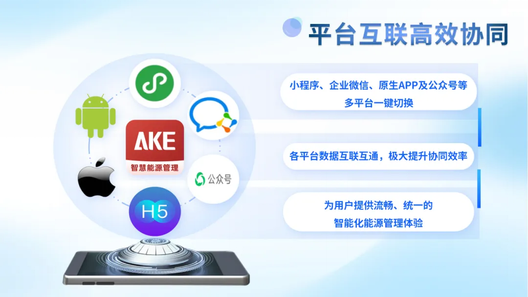 支持小程序、企业微信、原生APP及公众号等多平台一键切换,为用户提供流畅、统一的智能化能源管理体验。