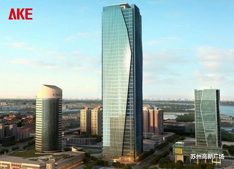 苏州高新广场位于狮山路北,金狮大厦东侧,大厦用地面积5242平方米,总建筑面积10.6万平方米,其中地上建筑面积6.8万平方米。主楼的主要功能为商务办公,总层数为45层,其中地上42层,地下3层。首层为10.5米层高大堂,二层为会议和新闻中心,3-42层均为核芯筒结构,层高4.2米,大开间办公室自由间隔、舒适、灵活。