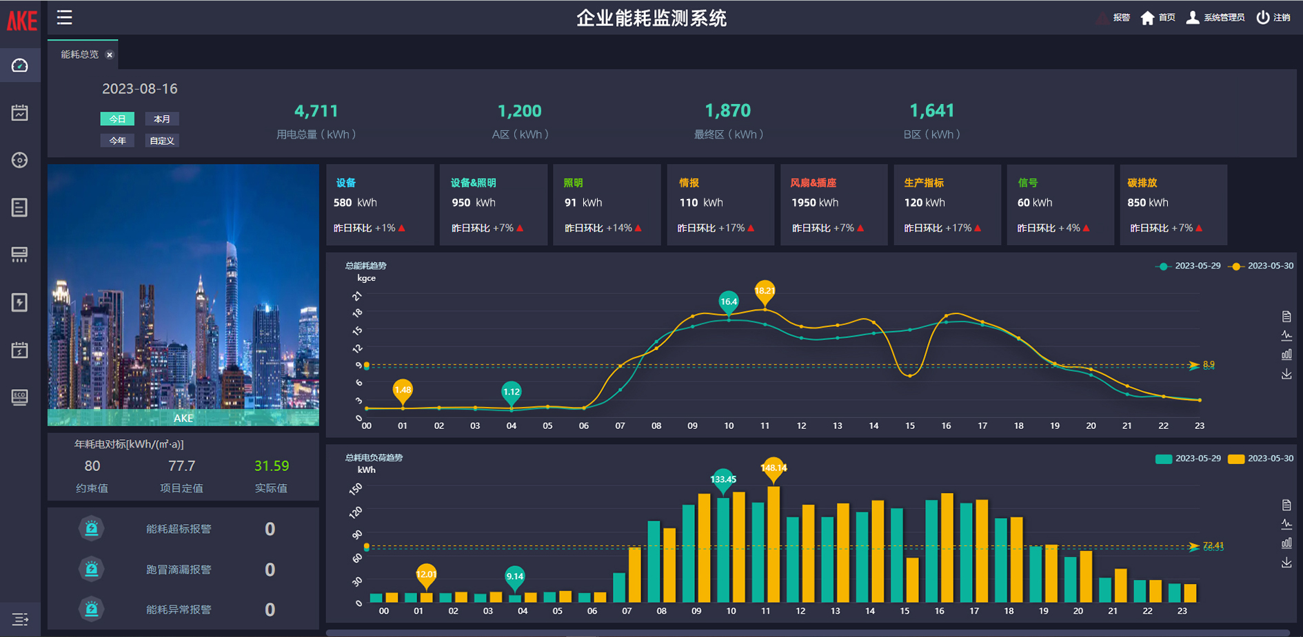 建设企业能耗监测系统,对车间配电箱加装多功能电力仪表,实现用电数据实时采集以及各配电箱电量的统计,优化用能规划,同时快速识别能耗超标、跑冒滴漏、能耗异常等情况,平台自动报警,故障及时处理,减少能耗损失。