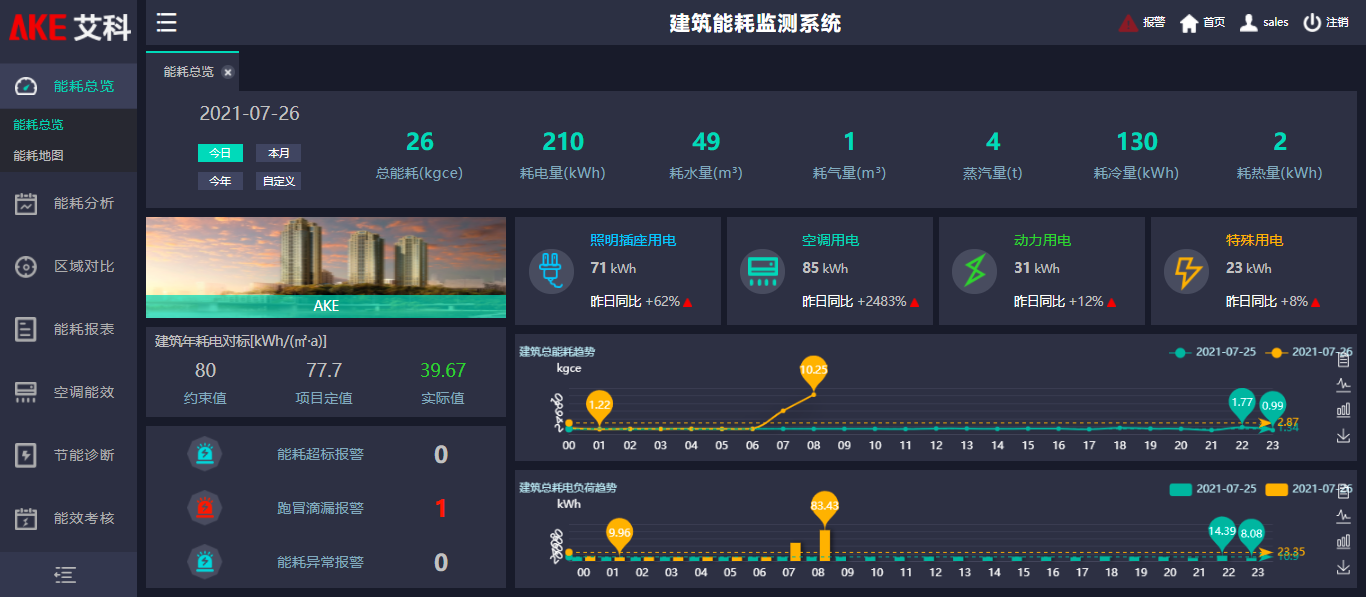 管理促节能,通过我司智慧建筑能源管理平台可了解建筑整体的能源消耗情况,对能耗指标进行逐级分解,从而降低能耗。